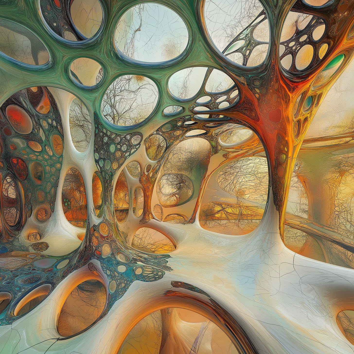 The image in each part represents progression from singular intelligence node towards hundreds and thousands of specialized connected nodes of intelligence created using Midjourney.